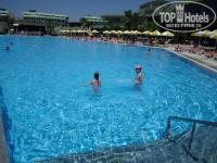 Отдыхали конец мая- начало июня 2012.Путевку брали в "Анекс туре". Отработали они везде хорошо. То, что трансфер-гидша не особо хотела с нами общаться даже порадовало - после перелета не всегда радуют долгие речи. С гидом в отеле повезло Асим оказывал помощь всем, а в начале помощь требовалась. Но вскоре гида нам сменили. Гид Мансур тоже не разочаровал, но и его тоже сменили. За 2 недели отдыха нам поменяли трех отельных гидов. Тактика "Анекс тура" по смене отельных гидов несколько напрягла и была непонятна. Отдыхали я с сыном 10 лет и брат. Отель выбирала долго, специально под ребенка. Делали раннее бронирование.Не пожалела, что выбрала этот отель.Отель на самом деле хороший.В день нашего заезда открывался после ремонта основной корпус и ресепшин переехал в этот день буквально перед нами в этот корпус.Поэтому была небольшая суета на ресепшине и задержки с регистрацией и расселением.В некоторых номерах не было света. Немножко подождали и нас заселили в номер, нам повезло. Номер хороший, после ремонта все чистенько, пушистый ковролин на полу,белоснежные полотенца и постели. Техника вся работала.В номере на стене весел "Сони бравиа" (лучше б он не работал))) - было бы проще оттащить моих мужчин от телевизора). Пишу об этом, потому что на фото отеля с сайтов везде стоят старые телевизоры. Полотенца и постели меняли часто, уборка была не очень хорошей - на балконе был пепел и мусор на полу в день заезда, он был до тех пор пока я не помыла пол, пылесосили в номере только 1 раз за 14 дней. Но это все не смертельно, мы особо не мусорили. Была заминка с ключами - еще до заезда я узнавала о количестве ключей на номер.Мне сказали, что колючей столько сколько взрослых в номере, но сменилась концепция отеля и ключ выдавали только один. Это нас не устраивало совершенно.На ресепшине сначала отказали в выдаче второго ключа, потом все же его дали, но то один ключ не работал, то другой.Вызывали техника, который быстро приходил и открывал нам двери. Вечером на ресепшине нам объяснили, что ключи не работают, потому что положен только один ключ на номер. Обратились за помощью к администратору Ане.Она подтвердила, что изменилась концепция отеля, но обещала поговорить с начальством и постараться помочь нам. Аня сдержала свое слово и на следующий день мы уже были с двумя ключами.Хочу сразу сказать о администраторах Ане и Иване. Это настоящие профи в своем деле, внимательны к туристам, вежливы, всегда стараются решить все проблемы туристов.Аня всегда шикарно выглядит (это радует глаз) , а Иван это вообще звезда отеля (одно его выступление на гала ужине многого стоит)) ). Вообще,весь персонал отеля очень доброжелательный. Много русскоязычного персонала, в том числе официантов. Питание хорошее, вкусное,остаться голодным и похудеть (увы) не возможно. Разные виды мяса всегда, овощи и фрукты.Немножко не хватило для полной радости желудка клубники и черешни, почему-то в самый сезон их не было, но и без них тоже было что покушать. Очень вкусная, разнообразная выпечка. Томатный сок был во всех барах, а персиковый и абрикосовый почему-то только в баре возле бассейна и в диско-баре (с подругой пили сок на дискотеке, чем вначале очень удивляли барменов). Хотелось бы, чтобы эти соки тоже были везде. Хочу отметить работу бармена Ясина - ну просто лучше всех! Вежливый, аккуратный, всегда с улыбкой на ли