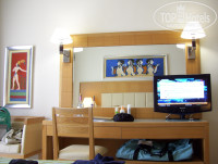+ большой просторный номер, всё чисто, мебель в хорошем состоянии, белые полотенца, в ванной два умывальника, плоский тв с двумя российскими каналами, расположение номера рядом с бассейном и недалеко от ресторана. При заселении в мини баре вино+вода+канапе.