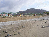 Отель находится в дали от цивилизации, на отшибе, вечером некуда пойти. Позиционируется для отдыха с детьми, но пляж и вход в море не очень хороший, грязного цвета песок, большие камни, дно моря довольно резко уходит на глубину. С левой стороны от отеля есть песчаный пляж, но с детьми идти по пыльной дороге и асфальту не вариант. Бар на пляже работал не постоянно. После 9-00 на пляже практически нет свободных лежаков, везде лежат полотенца, нет столиков.