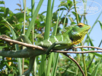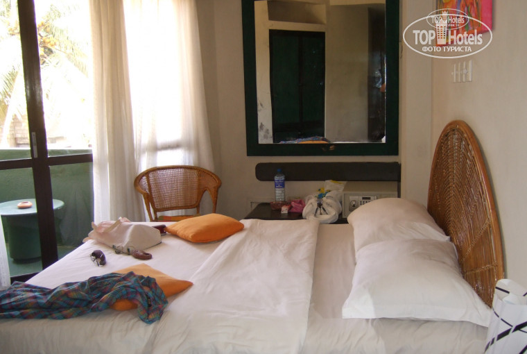 На карте (сайт Отпуск) отель отмечен совершенно неправильно. Он гораздо ближе к океану, без всяких пересечений дорог. Поселили в самом простом номере с видом на баскетбольную площадку. Менять не захотела, ведь номер нужен только поспать. Даже в самых простых номерах (супериорах) - сейф, холодильник, чайник, чашки, чай, кофе сахар, 2-3 бутылки воды, фен, полотенца (отдельно пляжные), шампунь, гель для душа, крем, мыло, телевизор. Мини бар платно. Сразу просите показать как работает сейф и как подключать розетки - есть отличия от остальных отелей. Оставляла каждый день 100 рупий или 1 доллар и румбой очень старался - не забывал обновлять чай, кофе сахар, косметику, воду, не говоря уже про чистоту. Персонал в отеле прекрасный. Относятся к каждому как к самому любимому клиенту. Если какие либо проблемы, реагируют тут же. При этом нет даже намека на чаевые - просто помогают с улыбкой. В этом огромное отличие от, например Египта. Но сам отель очень слабенький. Вообще нет территории. Дорога-отель-пляж. Сначала расстроилась - нет красоты. А потом нашла красоту вокруг в других местах и успокоилась. На территории возле отеля встречала ящерок, бурундучков, обезьян, неопасную змею, маленького варанчика. в отеле бесплатный WI FI на ресепшен. Пароль Вам сотрудники с удовольствием предоставят. Вроде есть WI FI в каких-то номерах, но возможно я не поняла персонал.