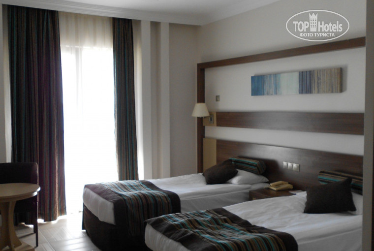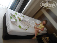 С номером вообще все удачно сложилось. Бунгало на первой линии, первый этаж, просторная терраса (как раз использовалась для загара во время сна ребенка) с видом на море ). Две кровати, телевизор, холодильник, кондиционер, фен, электронный сейф (в этом году бесплатный!). Все есть. Убирают каждый день, я пускала через день ) Вода 1,5 л. так же доставляется ежедневно, под конец отдыха у нас скопилось три бутылки )