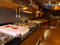 Питание, мое мнение, отличное! Овощи в любых видах, мясо трех видов (курица, телятина, индейка). Так же в различном исполнение, кто хочет с подливом, кто на гриле, ну а кому просто вареное. Свежевыжатый апельсиновый сок - каждое утро (бесплатно, читала что в некоторых отелях это платное удовольствие). Мороженое - каждый ужин, т.е. с 19.00 до 21.30, дети успевали по несколько раз лакомиться. Морепродукты: были кольца кольмаров в панировке, мидии, креветки. Разнообразие хлебной продукции, так же пекут свои лаваши, которые каждый день с разными начинками. На завтрак: омлеты, яйца 5 минут, стоит повар и жарит Вам яичницу с начинкой на выбор. Макароны любых видов... Все пополняется постоянно, стоят повара и следят за этим. С 12.00 на пляже пицца, гамбургеры, картошка фри, был куриный шашлык, лепешки с начинками. Вообщем - хорошо!