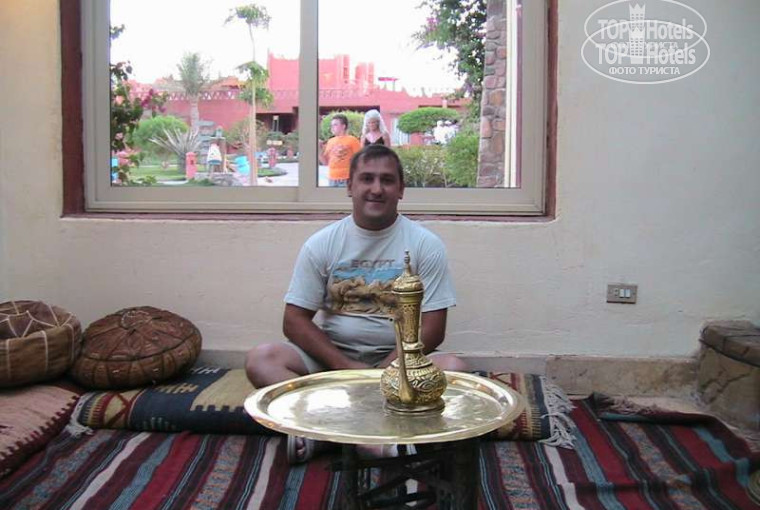 Отдыхал в данном отеле с 5 по 16 июня 2007 года. Тур брал в турфирме RUSA, туроператор Тезтур. Перелет авиокомпанией Трансаэро из Домодедово. Пеерелет без опозданий, на уровне, смотрели кино. По прилету тезтур встретил, посадил в автобус и увез очень оперативно, так как до отеля ехать всего минут 15, гид успел дать только основную информацию. Мы ездили вшестером (я, жена и дочь, и сестра жены с мужем и ребенком) и по приезду в отель (примерно в 12.30 дня) я попросил 2 номера рядом, других просьб не было (в один паспорт 10$), нам сказали что только после обеда и мы ушли гулять по территории (браслетики всем одели сразу). Осмотрелись, узнали расположение корпусов (по моему 23 и 27 самое неплохое расположение у моря!). Когда вернулись (около 14.00) нам дали ключики и все остальное(карточки на полотенца), номера в 10 корпусе на первом этаже: 1001 и 1004 (пытался попросить 23 или 27 корпус - не дали), о расположении номеров мы не пожалели, прямо возле главного бассейна, был и вид из номера на море, и рядом с главным рестораном, в общем в центре отеля. Обедать пошли в пулбар, так как в основном ресторане обед закончился. Вечером гид подробно рассказал об экскурсиях, немного об услугах в отеле, ответил на вопросы, в целом все довольно обстоятельно. Гиды (их двое) каждое утро и вечер по 2 часа находились в отеле. Кстати цены на экскурсии у теза, почти такие же как у арабов на пляже (в уличные труфирмы не ходил).