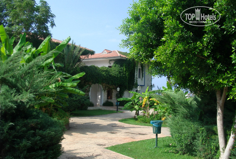 Большая и очень зелёная со множеством различных насаждений, которых у нас в Сибири просто нет. апельсины, инжир, лимоны и пр. растут вдоль дорожек. Из зелени заботливые хозяева выстригают привлекательные фигуры, арки много интересного. Вечером когда спадает жара, можно спокойно прогуляться после ужина перед сном, поговорить, вообщем отдохнуть душой )))