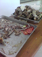 По средам в отеле турецкая ночь: османская кухня + турецкие танцы в амфитеатре. В ресторан приносят зажаренного барашка в огне. Но к сожалению мы ни разу не попробывали. Дело в том, что в ресторане катастрофически не хватает посадочных мест. Первый раз мы опоздали к открытию на 10 мин, мест естественно не было, прождали час в холле. Когда все же сели, выяснилось, что от барашка остались рожки да ножки (см. фото), все турецкие блюда съедены, а новых делать никто не собирается. Поели риса, поматерились на эту "турецкую ночь" и на то, что вообще жрать нечего и пошли, надеясь, что в следующий раз все будет нормально. Ан нет. Во второй раз пришли к открытию, но мест уже не было и все повторилось.