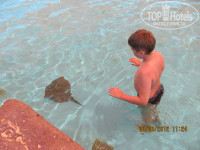 Про море. Вход с лесенок, сразу глубоко. На встрече с гидами спросили про дикий пляж, они сказали зачем Вам, идите на платформу, на мое возражение, что ребенок не умеет плавать ответили, что можно взять жилет. И действительно, для ребенка можно взять жилет, у дядечки, котрый занимается водными развлечениями. В конце отдыха хотела дать ему чаевые за это - отказался и чуть не обиделся. Было приятно. На дикий пляж мы так и не дошли.