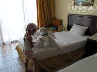 Отдыхали в отеле с мужем и ребенком 5 лет с 30 мая по 12 июня, в отель приехали в 12 ночи по местному времени уставшие, замученные расселили быстро без денег в комнату № 7610 на 2 этаже с видом на фонтан с дельфинами. Номер хороший, большой ,немного шумный кондей ,но потом привыкли. Принесли еду в виде сухого пайка (булки, колбаса, сыр,финики,апельсины и еще что-то).Полотенце было два маленьких, 2 больших ,на следующий день уборщик сам принес третье для ребенка. В номере есть фен, нет утюга. За уборку оставляли через день по доллару, убирал хорошо крутил фигурки, расставлял баночки, один раз расщедрился на букетик цветов.