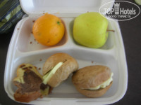- Сухой паек. Мы выезжали в 5 утра, попросили завтрак с собой. С нами было 2 маленьких детей. Когда мы открыли этот завтрак, были неприятно удивлены. 2 сухие булочки с несвежим сыром, кусочек непонятного скомканного пирога, апельсин и яблоко. Специально выложу фото пайка, чтоб не быть голословной. Это мелочь, с одной стороны, но ехать до аэропорта 2 часа, с собой еды никакой нет, дети канючат "хочу кушать". Надеемся, что администрация отеля вместе с шеф-поваром что-нибудь придумают взамен, хотя-бы картошку-фри, сосиску, огурец.