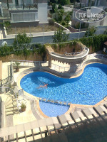 1. Территория: крошечная, подавляющую часть которой занимает корпус самого отеля, бассейн с 10-15ю лежаками, бар с открытым рестораном. Есть закуточек со столиками-стульчиками под двумя зонтиками у входа в отель. Дорожка вдоль левой стены здания, около которой посажены штук 5 пальм с ростками помидор))- вот и вся зеленая зона. Так что погулять негде, даже ОБОЙТИ ВОКРУГ ОТЕЛЯ НЕВОЗМОЖНО- с правой стороны техническая зона и забор. До центра Кемера идти минут 15. Поблизости нет ни магазинчиков, ни аптеки, только одни отели разного калибра. Сам отель расположен на уровне минус первого этажа, как бы в низине, что усугубляло духоту. Дышать днем в открытой части ресторана и в баре было просто нечем. Ветерок туда просто не мог проникнуть. По периметру - каменные стены. Очень ограничен обзор, зрительно напрягает, взгляд все время утыкается в стену. Из "плюсов" по территории- ЧИСТО, единственную коротенькую дорожку вдоль пальм регулярно поливают. За малюсеньким кусочком земли заботливо ухаживают. Из некоторых номеров красивый вид на горы.