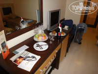 1. Размещение. Из-за задержки рейса по метеоусловиям попали в отель в 4 утра, разместили сразу и рядышком по нашей просьбе номера 707 и 717 (это последний этаж во втором здании). Презент от отеля ожидал на столе. Не знаю, как в главном здании, здесь номера с нормальным, не скошенным потолком, номера на 3-х, балкон большой типа лоджии без крыши. Всё работало, сантехника в порядке. Прекрасный вид на бергамотовую рощу, мечеть и горы. Тишина и благодать. Территория зеленая и цветущая, каждый вечер после шоу убирают и моют. Единственный минус который произошел именно с нашим номером - первый раз его убрали на второй день и только после того как сходили ближе к вечеру на ресепшен. Чаевые так и пролежали на столе нетронутыми. Вообще я заметила особенность: если в номере поддерживать порядок, его убирают каждый день без чаевых и напоминаний. Стоит только оставить кровать незаправленной или в номере небольшой хаус - все - останетесь без уборки до след. раза.