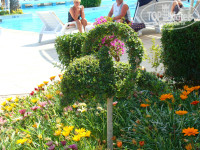 Територия очень зеленая и ухоженая - удачное сочетание бассейнов и зелени, дорогу совсем не замечаешь все засажено деревьями и кустарниками.