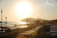 2. Пляж: от границы отеля до пляжа идти по подземному переходу под дорогой не более 50 метров. Пляжные полотенца в отеле не выдаются, поэтому обязательно берите свои. На пляже естественно есть шезлонги, матрацы, зонтики, бар (пиво, вино, лимонад, вода, чай, кофе, но съесть в баре нечего). Непосредственно на пляжу отеля заход в море не удобный не только для детей, но и для взрослых: земля представляет собой твердую породу состоящую из мелкого камня и песка спресованного веками. Но в непосредственной близости (10м правее) от пляжа есть пирс, с которого в море спускается две удобные лестницы. С пирса с большим удовольствием прыгают в море туристы включая женщин и детей. Удобный заход в море сразу за пирсом (20м от пляжа отеля) песочек с пляжа отеля Doganay. Также есть удобный заход в море и влево по побережью (50м), там пляж какого-то другого отеля, который заканчивается диким пляжем и камнями, в которых рекомендую пофотографироваться на восходе или закате, а также понырять с маской. Море чистое, теплое. Волейбольной плащадке на пляжу нет, но без проблем можно поиграть на пляжу ранее упомянутого отеля Doganay (100м).