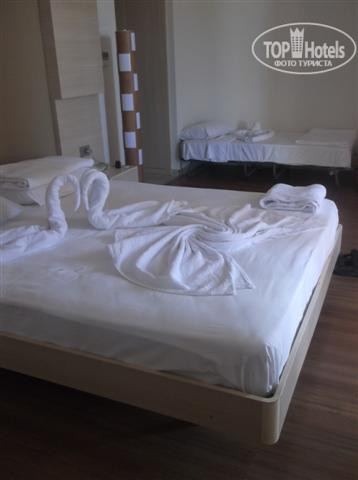 Так как стандартное заселение после 14 часов, мы раньше и не дергались ни нервировали ни себя, ни ресепшн. Пришли в 14 часов, нам дали ключ электронный пошли в номер. Я, честно говоря расселения очень боялась, так не хотелось бы получить плохой номер. НО! Без всяких доплат и прочего нам достался номер, специально его измерила))) 36 кв. метров и это только сама комната + коридор с большим шкафом+ванна. Длина номер 9 метров ширина 4, балкон был такой же огромный длина 9 ширина где 2,5-3 метра))) на +1 этаже. Мы не поверили своим глазам, радости не было предела, да еще, что самое главное БЕЗ ВИДА на море, как мы и хотели. Я уже писала, что хотела номер в тишине, а все номера с видом на море ну очень шумные, во всех номерах слышна музыка, ор отдыхающих, визг и прочая прелесть, там где много людей. Вобщем нам очень повезло. В номере все новое удобное красивое. Отмечу специально для девушек: фен можно не брать, у кого длинные волосы меня поймут)), фен там пашет будь здоров, мощность хорошая, 2 часа волосы сушить не придется. У дочки очень длинные, так в других отелях иногда мучались. И напор воды сильный, тоже раньше бывали проблемы, что головы не промыть. Здесь в этом плане все отлично. Кондишн тоже пахал на ура. Уборщицу вызываешь сам. Убирают так, как будто мимо пробегали, вроде убрано, но как то наспех. Обязательно кидайте полотенца на пол для замены. Не бросите не заменят!!! Каждому в номере дают тапочки, шампуни, гель для душа. Кола, фанта спрайт только при заезде, далее только вода в маленьких 0,33 бут. Но по всему отелю стоят кулеры, можно наливать воды сколько угодно, ее всегда в достатке.
