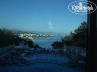 У нас сам номер располагался как в окгруглой части отеля, если смолтреть по фоткам на корпус, вот там как раз в этом закруглении и располагаются самые большие номера. Под самим окном был какой то песок, если смотреть вдаль, то видно немного трассу, вдалеке дома и горы. Нормальный вид, не ах конечно, зато ТИХО. А на вид на море я и на море насмотрелась)))