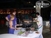 МС Парк – очень большой отель (как нам потом сказали, в день нашего въезда заселилось 700 человек)!!!! Поэтому в ресторане всегда ОЧЕНЬ много народу, очереди. Кормили хорошо, пожаловаться не на что… было мясо в разных вариациях, курицы - навалом). Причем не раз при нас на вертеле жарили барана, на гриле – рыбу и курицу. Из фруктов были арбузы, дыни, персики, абрикосы, яблоки, апельсины, клубника. На завтраки в основном яйца в разных видах - всмятку, яичница, омлет, сосиски. Пекли лепешки при отдыхающих, кроме этого, всегда была СВЕЖАЯ выпечка. Овощей и травы всегда хватало всем. Были и сухие завтраки, молоко. На обед всегда было что-то из мясного или рыбное, картофельное пюре, рис, макароны, тушеные овощи, фрукты. В снек-баре, на пляже, тоже кормили хорошо. Всегда был картофель фри, макароны, соевые котлетки (куда без них!))), фрукты, овощи. Ужин был всегда лучше, чем обед. Места в ресторане хватало – там три зала+терраса. Спасибо поварам! Что касается выпивки, то тут загвоздка…часто слышалось в барах «Фанта Финиш! Beer финиш!» и т.д. Часа через два появлялось снова. Пиво было нормальное, не разбавленное. Из крепких напитков был джин, водка и местный напиток (может, еще что-то было, я не фанат крепких напитков). Вино не пили, зная, что оно порошковое. Из лимонадов были фанта, пепси и спрайт. Все наливалось из кег (сама все видела. Кеги были запечатанные). В барах кофе, чай и т.д.