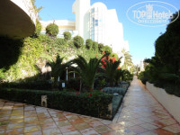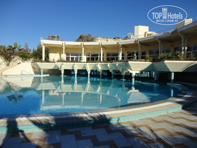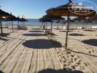 Территория занимает первую линию (талассо и пляж), жилой корпус находится на второй линии. За счет этого на территории отеля (около бассейнов) не сильно ветрено по сравнению с пляжем. Проход к морю по подземному переходу.
