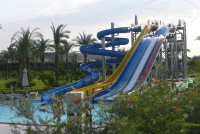 Что касается заселения-нас тоже заселили в 12 часов,но денег мы не платили и никто не просил.На мою просьбу дать большую кровать,чтобы не врозь стояли,нам дали 2-х комнатный номер с кухней с видом на бассейн и сад.Надо заметить,что в отеле 2 территории с корпусами.1 территория с центральным входом,и 2 с аквапарком.Корпуса с видом на водопад и аквапарк новее точно и у них своя обособленная террритория с бассейнами,но для всех туристов.Персонал в номере убирал хорошо и постельное бельё нормальное,не старое.Комаров каждый вечер обкуривают из пушки,и нам принесли баллончик на всякий случай.Горки работали исправно.Стоит молодой человек на верху на горках и контролирует процесс,никаких травм наши мужчины и дети не получали.Только в ноябре долго на горках не покатаешься-вода без подогрева.