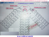 Расположение номеров и вид на море – это как повезёт. У нас был заявлен боковой вид на море. В любом случае из номеров выходящих на море, будет слышен бассейн (вернее музыка около бассейна и все крики около бассейна). Номера первого этажа (с 100 –го) в основном корпусе не имеют индивидуального балкона, вместо выхода на балкон выход на общую террасу. По левую сторону от отеля (если встать лицом к морю) стадион (не имеющий отношения к отелю) на котором живут 4 или 5 замечательных собачек которые начинают веселиться в 6 часов утра (их слышно левому крылу отеля). Если из главного корпуса с 3 или 4 этажа есть вид на море, то из бунгало особенно с 1-го этажа вида на море не будет, вид будет на бассейн, pool bar (со всеми вытекающими последствиями) или на территорию стадиона или соседнего отеля (на пустырь около соседнего отеля). Прошу обратить внимание что на схеме которую дают при заселении перепутаны номера бунгало в правой линии (по факту например 752 смотрит окнами на деревья и дорожку вокруг отеля, хотя кусочек моря из него видно)