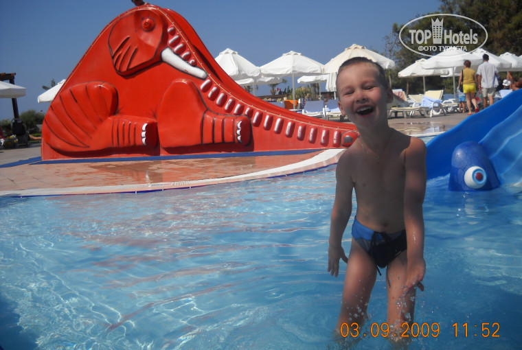 Почему все забывают про детские водные горки возле мини-клуба?(см. фото) Их что, снесли? До 5 лет они вполне подойдут. Детская анимация раньше была до 24 часов и без перерыва на обед, так что взрослые могли вообще заниматься своим отдыхом, зная, что ребенок в компании аниматоров носится за "индейцами" или ищет "пиратский клад". И потом получает свою долю за поиски сокровищ - жвачки, воздушные шарики и т.д. А вечером вместе с родителями запускают самодельные фонарики, которые сделали днем с аниматорами, в большом бассейне (около 21.30 после ужина)- такая красота и романтика, такое единение всех, и маленьких, и больших разных национальностей!
