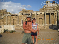 Расположение. Очень близко от мыса "Сиде" - исторического места с храмом Аполлона, Афины, Диониса, амфитеатром, молом и еще много чего. Не тратьте деньги на гида, они ничего вам хорошего не расскажут, лучше почитайте в интернете и сами за 15-20 минут прогулки по пляжу дойдете до этих развалин и полюбуютесь в свое удовольствие. Погода была разная, дождливая в тот год, поэтому ходили в Сиде на прогулку и по магазинам раза 3. У нас всю обратную дорогу обычно сын ехал верхом на папе.