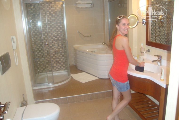 Т.к. в Турции впервые, мы и не знали, что надо что-то кому-то давать для хорошего заселения. но нас заселили за 15ть минут в номер в главном здании на 4м этаже. Номер огромен. С хорошей мебелью, огромной плазмой, джакузи, душем, работающей вытяжкой, густым ковролином. Уборка проходила каждый день. Оставляли по доллару-всегда была питьевая вода, гели-шампуни и чистые полотенца. За номер пять.