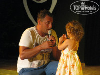 4. Анимация была довольно интересная как для детей так и для взрослых. Для детей каждый вечер проводилась детская дискотека с аниматорами, нашей дочке 3 года и каждый вечер услышав детскую музыку она в буквальном смысле не давала нам поужинать и "тянула" нас на танцы. Для взрослых анимация тоже была интересная с различными конкурсами и шоу-программами (турецкая ночь, камеди, караоке и т.д., "рулил" парадом аниматор Шереф- классный парень -"респект ему и уважуха", все мероприятия проводились до 22-30 часов, что очень хорошо для отдыхающих с детьми. А все желающие продолжить вечер собирались на ресепшене в 23-15 и отправлялись в ночной клуб.