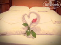 Прилетели мы в Анатлию в 7 утра из Екатеринбурга, трансферт аэропорт - отель занял 2 часа, они пролетели не заметно! В отель приехали в 9 утра Заселение в номера начинается в 14-00, нас отправили на завтрак и сказали дожидаться 14 часов (денег мы в паспорта не ложили). Покушали, погуляли загорали возле бассейна к 17 -00 нас заселили в прекрасный номер 303 - двухкомнатный с видом на море, хорошим ремонтом и новой мебелью площадью примерно 36 кв.м , номер рядом с рестораном и нижним бассейном. Убирают там действительно плохо - точнее вообще не убирают - оставляешь чаевые - застилают красиво постель с лебедями и розами ) но на этом все!!! Ни разу душевую кабину не почистили. правда пол мыли.. не оставил чаевых можешь и на постель не рассчитывать ).