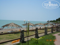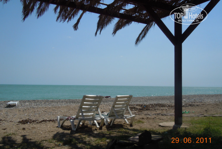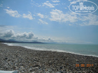 10 шагов до моря, 10 минут ходьбы до города (магазины, кафе). Чуть дальше - 20 минут - рынок с сувенирами, новоафонские пещера, водопад, монастырь, парк с лебединым озером. Это, в общем-то и весь город. На территории отеля шикарный ресторан - готовят очень вкусно. Много деревьев. Также много собак, но они позитивные)) от дождя прятались на нашем крыльце.