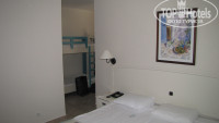 Сам номер маленький, представляет собой 2 крохотные комнатки: 1 - прихожая-спальня с маленьким жк телевизором, кондиционером. холодильничком и детской 2 этажной кроваткой; 2 - спальня кв. метров этак 9, обычный набор мебели: кравать, такойже маленьки телевизор, шкаф, комод, 2 тумбы, зеркало, кондиционер. Что удивило - отсутствие напольного покрытия, ковролин бы не помешал. В ванной тоже всё просто, фен, раковина с зеркалом и душевая кабинка, ванны нет, нет сушилки, а учитывая что отсутствует балкон, или его полдобия - вещи сушить негде, для этого приспособили детскую кроватку.