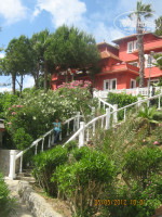 К морю спускались на фуникулере (есть расписание его работы),для ребенка это было забавой, да и для нас восторг, да )) Иногда ходили пешком (во благо здоровью), правда если не пекло, хотя лестница почти вся прикрыта деревьями, затемнена - все продумано! Рядом с пляжем мини ресторанчик, можно было плотненько перекусить на свежем воздухе с прекрасным видом на море с корбликами )) Женщина там же пекла вкусные лепешки с сыром, мясом и шоколадом - по заказу на начинку ))