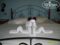 До отеля добралисьб быстро. Первое впечатление -отель как отель.Разместили нас довольно быстро. Номера были стандартные, что у меня (на одну), что у семьи (с ребёнком 4-х лет). Им дополнительно поставили раскладушку. В номере всё работало. Убирали регулярно, но пол не мыли за 10 дней ни разу.