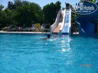 Бассейн очень просторный, горки включали почти всегда вовремя. Сын был очень доволен, скучно не было. Сравнивали размеры отелей и бассейнов в рядомстоящих 3-х. То этот отель просто огромный по сравнению к примеру в Венусом, который видно на фото (рыжее здание).