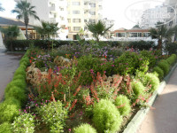 Территория отеля чистая, ухоженная, дорожки постоянно подметаются (от песка с моря) поливаются водой. Есть места где можно посидеть как летнем кафе.
