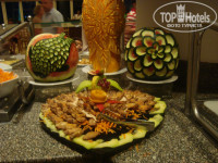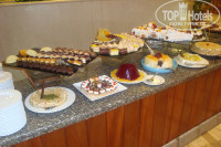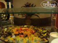 Еда... конечно нет чёрной икры и шампанского кристалл...НО для Египта питание хорошее и даже ОЧЕНЬ...на завтрак одно и тоже, но это обычно для отелей этой страны и по такой цене.было всё вкусно..на обед и ужин давали: картофель, пасту, рис разных видов, кус-кус, фасоль, овощи гриль, овощи на пару, свежие овощи и салаты, из мяса: кальмары, рыба(жареная и на пару), курица, телятина, баранина, перепёлка(1 раз), говядина, из фруктов когда как перечислю что давали за всё время отдыха:свежие финики, бананы, виноград, апельсины, персики, дыню, на завтраки подавали фруктовые салаты. десертов много... соки пакетированые: вишня, яблоко, апельсин, гибискус, гуава, манго, ананас, кола спрайт, миринда и т.д. Из еды всёравно всё не перечислишь, что вспомнила написала...мороженое вкусное дают с 12-17 дня 4 вида: шоколад, манго, ваниль и клубника, вкусное.