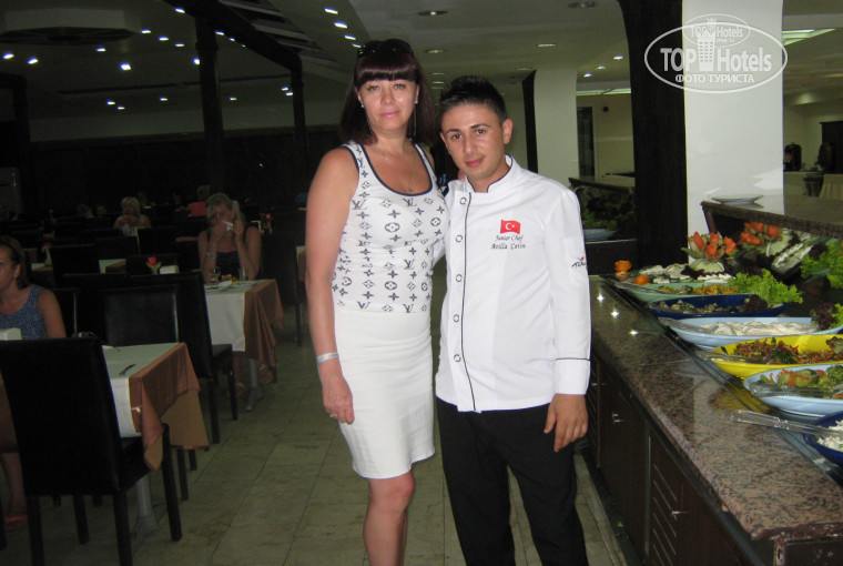 В Турции отдыхала с дочерью впервые. Встретили очень доброжелательно, на нашу просьбу поселить в номере с видом на бассейн сразу откликнулись. Номер хоть и не большой (двушка), уютненький. Все понравилось. Особая благодарность нашему шеф- повару Отило. Просто умничка! Украинский борщ, солянка, просто класс! Анематоры Дова и Му-Му просто молодцы. Водная гимнастика под руководством Му-Му способствовала преобразованию одного большого кубика в маленькие шесть на прессе. Каждый вечер разная программа с конкурсами и огненное шоу с их участием очень радовали. Вообще все было просто замечательно. Теперь хочу в Турцию ВСЕГДА!