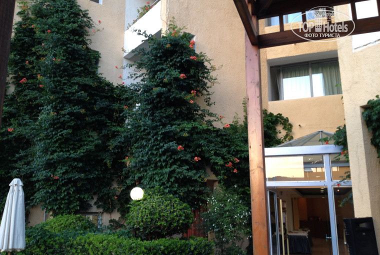 Наш отель стоял дальше от дороги и корпусов не видно с дороги (Агапи и Крета стоят возле дороги, номера выходят на дорогу, по которой часто ездят машинки).