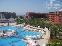 От аэропорта ехали где-то часа полтора. Встретили, отвезли без происшествий и нареканий (анекс тур). Приехали в отель около 9-30 утра. Заселение произошло к 12-ти. Денег не предлагали. Номер на 3-м этаже в недостроенном корпусе с видом на корты (с улицы тишина и покой и солнца прямого нет, так что всё устроило). Не устроило только то, что в номере было очень грязно, будто бы его не успели убрать после предыдущих жильцов и у жены отдых начался с генеральной уборки номера. В конце первого дня перестал работать кондиционер. Пришел техник, что-то пытался починить в течение часа, но в итоге так и не сделал и нас тут же (к чести персонала) переселили в соседний номер благо что вещи далеко таскать не пришлось. В общем сам номер просторный и хороший, но уборка никакая - всюду (после уборки) пыль, подтеки и т.п. У нас нет маленьких детей и сорить особо некому и некогда - что же делается в номерах у кого детки ? Постельное вообще за 11 дней НЕ МЕНЯЛИ НИ РАЗУ ! Такое впервые.