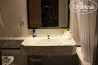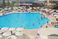 Разместили сразу и без каких-либо проблем. Номер дали с видом на соседний отель и теннисный корт, но т.к. нам вид из окна не сильно был важен (лишь бы не на помойку), то мы даже не стали просить его поменять. Тем более этаж был 5, красивые кустики за окном и как раз тишина, чтобы не было по утрам слышно маленьких детей, а по вечерам анимацию. Наискось даже море было видно. Но надо сказать, что еще одна пара, с которой мы там познакомились, получили сначала номер на первом этаже с гнездом птицы на балконе и были этим очень расстроены. Но им вроде в тот же день вечером поменяли номер. Говорил кто-то, что если номер не нравится, то за 20 динар его спокойно могут поменять. Мы не проверяли.