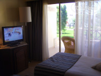 2. Номер: номер нам понравился сразу же и не было никаких плохих недочетов. Там всё работало и нас всё устраивало. В нём новая мебель (фотографии приложены к отзыву), большой плазменный телевизор, два выхода (дверной и с террасы). Номер номера у нас бы 4217. Номера которые были начинались на цифры: 11**, 12**, 20**, ______, 41**, 42**....Так вот, номера которые были на цифры 11** и 42** были самыми хорошими, так как они построились недавно и были с хорошим ремонтом, но это не значит что другие номера плохие, просто у них не стеклянный душ, а ванна или не плазменный телик, а обычный маленький....