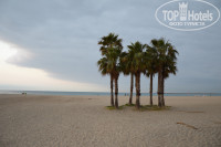 Про пляж - собственного у отеля нет, но общественный вполне устроил, народу мало, лежаки не требовались (пользовались пляжными ковриками). В последний день, по причине ранней выписки из номера (освободить номер надо было в 10:00, а автобус в аэропорт только в 14:25), взяли шезлонги под тентом, получилось на троих 17 евро за день.