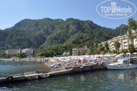 Хороший отель, принес только положительные впечатления! Нельзя сравнивать отели Мармариса с дворцами-отелями Сиде, Анталии и Кемера, они немного попроще с небольшой территорией, но это полностью компенсирует природа и климат. Безумно чистый воздух, зеленые деревья, цветы, бирюзовое море и горы. Расположен на берегу Эгейского моря, в уютной бухте. Вода чистая, плавают рыбки, вход в море - песок и мелкая галька, но действуют холодные течения, поэтому температура воды может колебаться от весьма прохладной до теплой. Места на шезлонгах на пляже и у бассейна хватало всем.