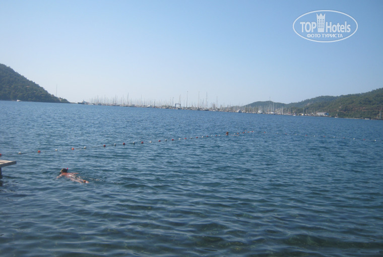 Питание. В целом понравилось, но существует несколько но... 1. За ужином нет гриля. Бывает только раз в неделю по понедельникам, когда турецкая ночь. Мы попали два раза. В первый раз был куриный шашлык - ничего, вкусный. Во второй - шаурма горелая. Никто есть не стал - черная и горькая. 2. Из фруктов только арбузы - правда на завтрак, обед и ужин, дыни - не сладкие и зеленые сливы. Фрукты покупали в Мармарисе в супермаркете Tansas, расположен на конечной остановке маршрутного автобуса. Инжир, например, стоит 4 лиры - приблизительно 80 рублей. 3. В открытой части ресторана, особенно если садитесь около перил, очень много ос, иногда приходилось пересаживаться в закрытое помещение, так как есть было невозможно.