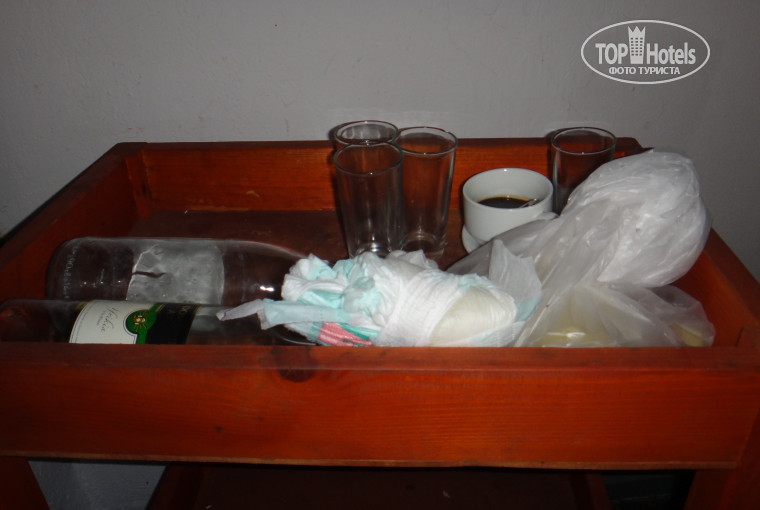 5. В корридоре, при выходе из номера мы увидели такую картину - использованные детские подгузники лежали рядом со стаканами и кружками.