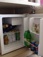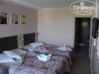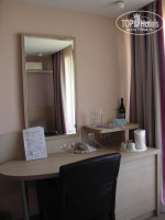 В номере есть всё и все это новенькое: двуспальная и односпальная кровати, диван, ЖК-телевизор, кондиционер. Мини-бар заполнен, но в него не возбраняется класть свои напитки. Еще были бокалы для вина, воды, электрический чайник, две чашки. Кондиционер работает при закрытой балконной двери. У нас сначала не было пультов от него и от телевизора. Мы попросили уборщицу, и она нам их принесла. Вообще, на нашем этаже была общительная, доброжелательная уборщица. Она говорит по-русски. Полотенца меняла каждый день. Белье за неделю поменяла один раз. Убиралась нормально, а когда мы оставляли пару левов, она крутила лебедей. Поразили белье и полотенца. Они были белоснежные, мягкие.