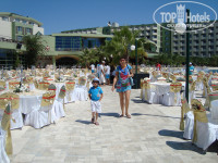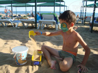 Из всех посещенных турецких отелей - самые приятные впечатления - от Golden coast. Пляж - песчаный и всегда чистый (даже после пляжной вечеринки). Размещение - супер! Сначала нам предоставили номер в основном здании с "видом и запахом" на ресторан. Сразу после обращения на рецепшн заменили на номер на первом этаже корпуса с видом на "тихий бассейн". Еще один плюс такого заселения - к корпусу пристроен ресторан, в котором подают завтрак и ужин. Так что в основном ресторане мы только обедали. Питание, кстати, оченно даже соответствует хорошим 5 *. Пакетированные соки, мороженное, в гала вечер - все вплоть до суши, даже на пляже во время пляжной вечеринки есть и что попить и что покушать (например, такой "раритет", как вареная кукуруза).