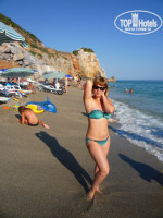 Пляж от отеля как я уже писала не очень, там плита скользкая, неприятно и не удобно заходить, мы всегла на соседний пляж ходили, чуть левее, там песочек очень чисто.