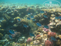 До моря за исключением пары раз добирались на автобусе не по причине лени а из-за жары, я конечно подозревал что летом в Африке жарко, но оказался не готов к этому "фену"... Собственно море и было главным критерием при выборе отеля... Море СУПЕР, риф очень красивый, рыб множество и есть где поплавать. Не в даль конечно а вдоль рифа проплывал через два отеля (вправо) с пантона. Ну тут нечего рассказывать надо это всё своими глазами в маске видеть... Брали экскурсию на о.Тиран на яхте с тремя остановками 1 погружение с аквалангом и 2 раза посноркать с маской, так вот у отеля риф не хуже по красоте....