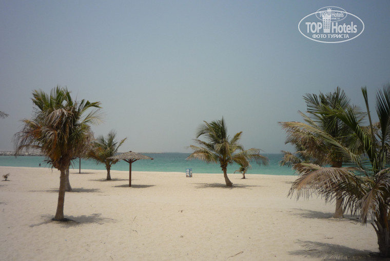 Потом постепенно садаптировались и даже стало нравиться. (Ходишь по магазинам, торговым центрам, замерзнешь - выходишь на улицу погреться))). Песочек белый, чистый. Раз в два года его привозят из Австралии. Автобус от отеля возит купаться на пляж-парк Аль Мамзар. В автобусе всю дорогу поет Русское Радио, которое мы дома не слушаем никогда... Мы бы предпочли послушать арабские песни, для поддержания отпускного настроения. Очень красивый парк, на пляже много туалетов, душевых и комнат для переодевания. Плавают рыбки, муж постоянно нырял с маской, поэтому живот у него слабо загорел ))) Народу мало. Лишь на вышке сидит охранник - спасатель.
