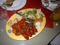Единственное, что не понравилось - поведение русских женщин 50 - 60 лет (ну уж, извините, так приметила) которые везде создавали очереди: за талонами на пляж, на автобус на пляж... А как они бежали на обед!! Надо было снимать кино! С пляжа автобус подъезжает к отелю: толкая всех локтями дамы скорее стремятся к выходу, забегают в гостиницу, нервно жмут кнопку лифта, чтобы подняться сразу в ресторан... В одежде промокшей от купальника, соль на плечах, волосы всклокочены, сумка в песке на плече они несутся туда, где их покормят... На несколько тарелок нагребается по 5 котлет (видела своими глазами), мясо, рыба, всех граниров надо обязательно попробовать... На тарелку не влезает уже, берут вторую... заполняют... Скорее надо успеть ухватить десерт и выловить лучшие фрукты из салата.... Ведь потом не останется. Начинают кушать: первая и вторая котлета быстро улетает в топку, салат, гарнир, в третьей котлете начинает притормаживать... похоже сыта душенька)))) ах нет, бережет место для десерта. Торт, добавка торта... Официант уносит целые котлеты, нетронутую рыбу выбрасывать. А вместо опустевшего противня с котлетами уже выносят голубцы или фаршированные перцы, или курицу... И свежий торт, обновляют салатики.