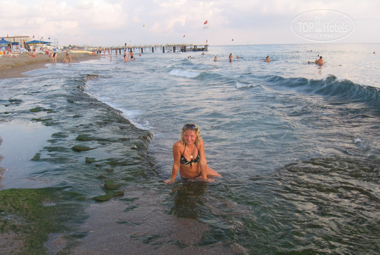 Пляж.Пляж конечно не очень,если точнее то вход в море.когда я первый раз был в этом отеле то все время в море заходил с левой стороны,а там эта жуткая плита!!!только за два дня до отьезда мы узнали что справа плиты нет.в этот раз я со знанием дела размещался на пляже уже справа,но все равно некоторые фрагменты плиты и там попадались,я даже ногу разбил в кровь.так что заходя в море надо быть очень внимательным как справа так и слева!на пляже очень сильно напрягал зазывала-экскурсовод который все время орал : ЯХТА СИДЕ ..... иногда это даже бесило.благо он активен был не постоянно ))))))))))